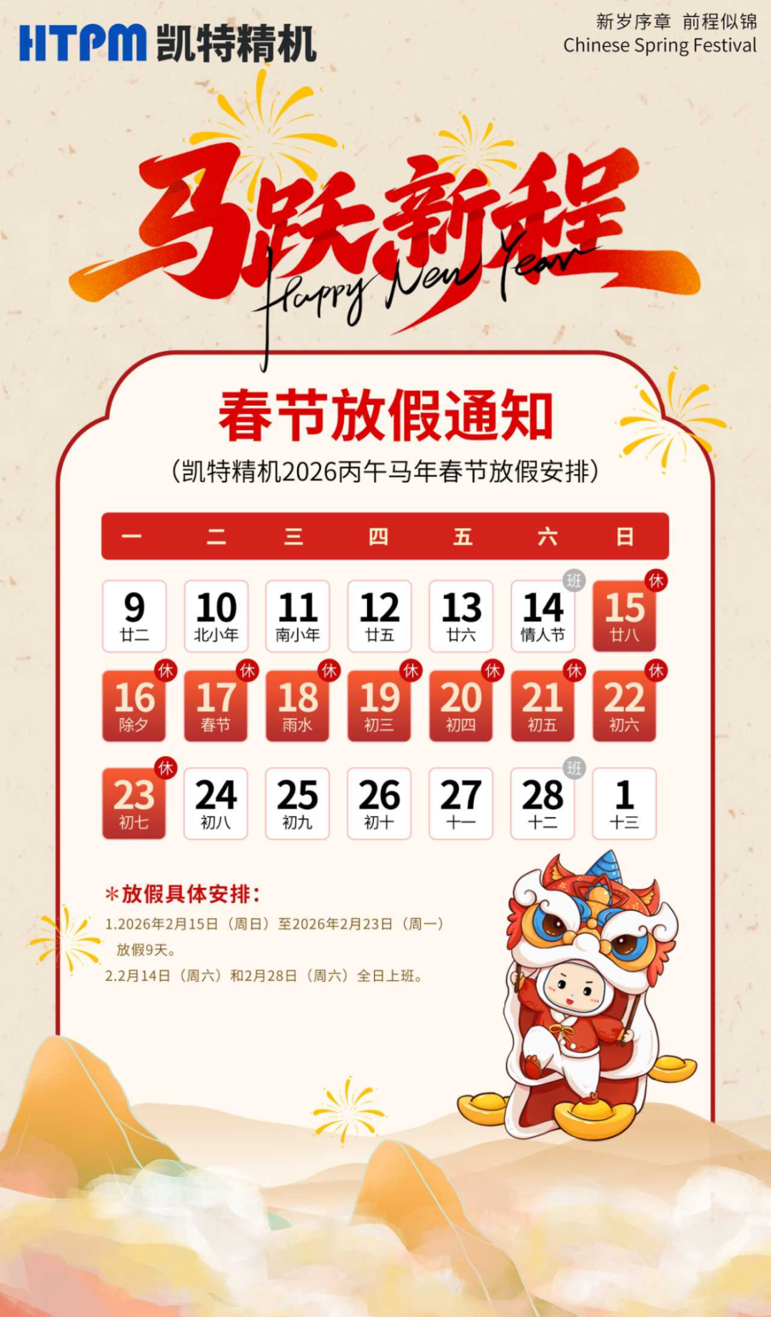 新春伊始,万象更新。值此2026年春节来临之际,凯特精机全体员工谨向您与您的家人致以诚挚的问候与美好的祝福!衷心感谢您在过去一年对凯特精机的信任与支持,这始终是我们持续前行的强大动力,也激励我们在产品与服务上不断突破,收获累累硕果。