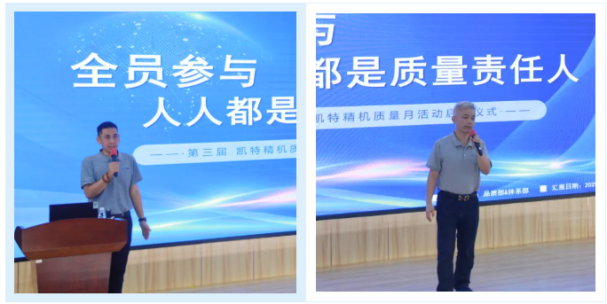 “全员参与,人人都是质量责任人”,为持续推动先进质量意识深入广大员工,于2025年10月开展覆盖全业务链条、多层级联动的“第三届凯特精机质量月活动启动仪式”,并将持续开展系列质量活动,实现质量管理从“专项攻坚”到“常态长效”,锚定产品质量生命线。